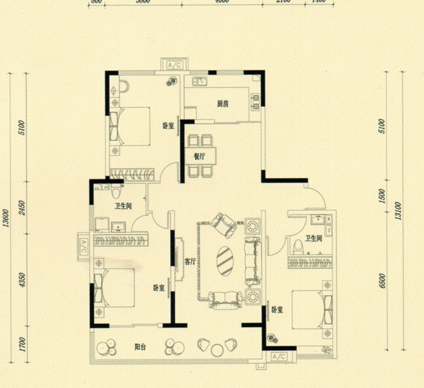 房屋户型 3室2厅2卫